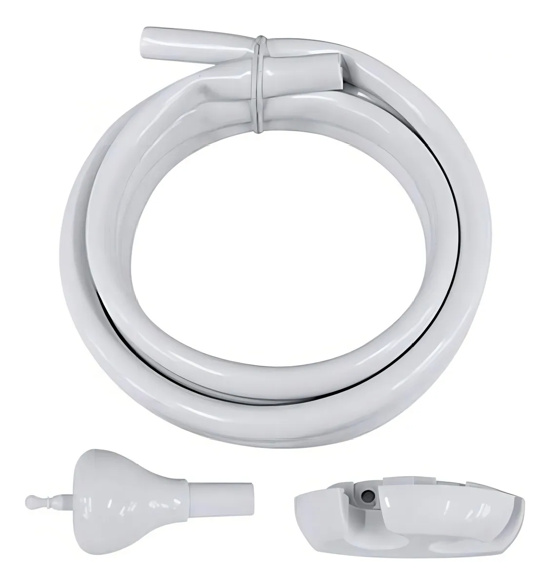 Acompanha mangueira lisa com 1,90m de comprimento e suporte para ducha manual.
